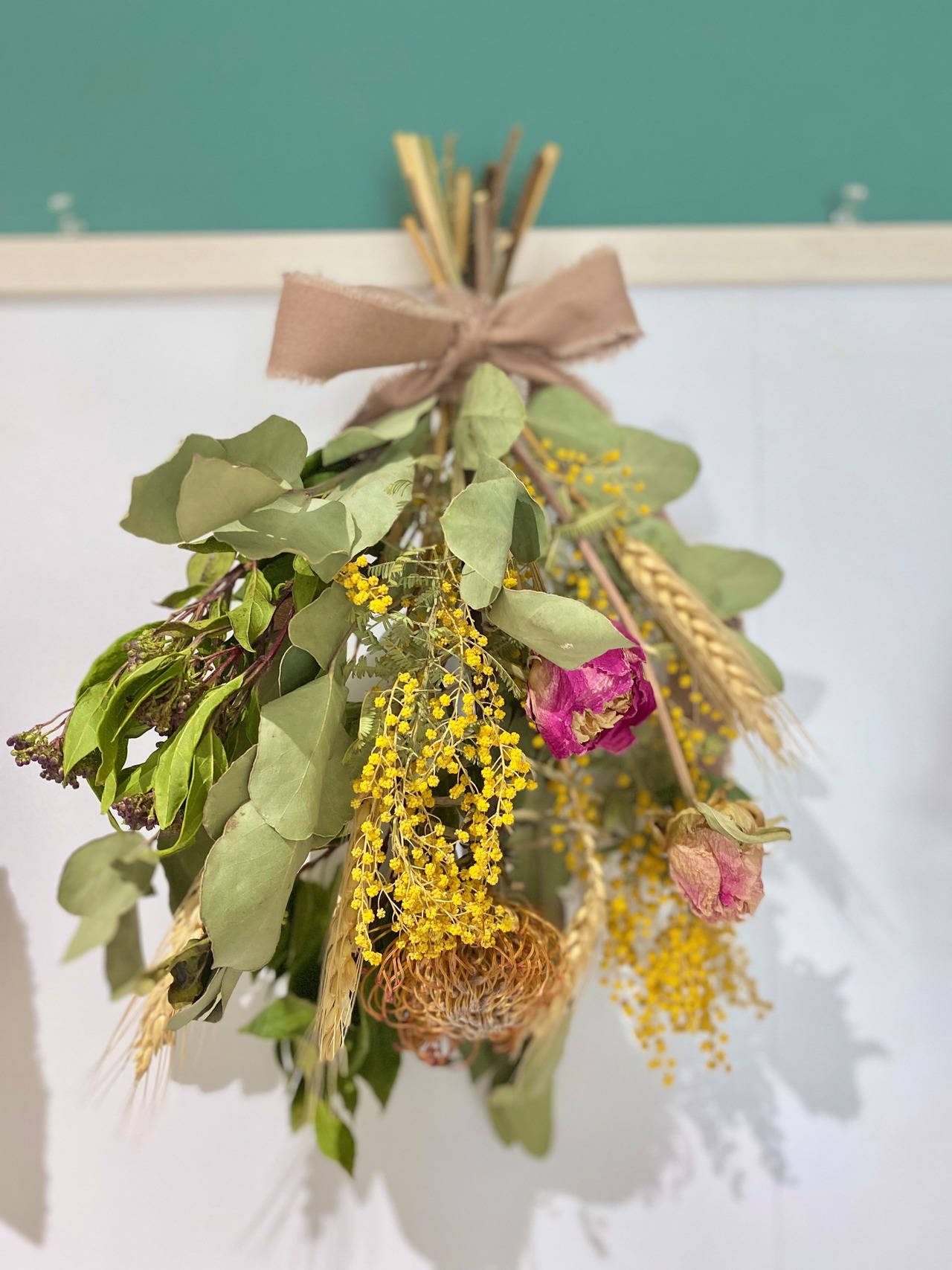 スワッグの一部に、ソラフラワー(木の皮から作られた花)を使用しております。